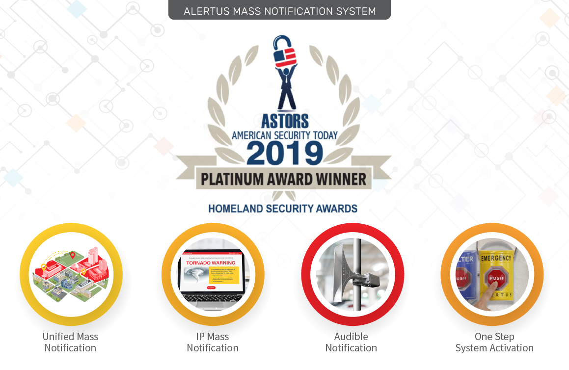 Beltsville, MD – November 26, 2019 – Alertus Technologies, a market leader in unified mass notification, is pleased to announce that American Security Today named it the Platinum Award Winner for 2019 Best Mass Notification System-Application.