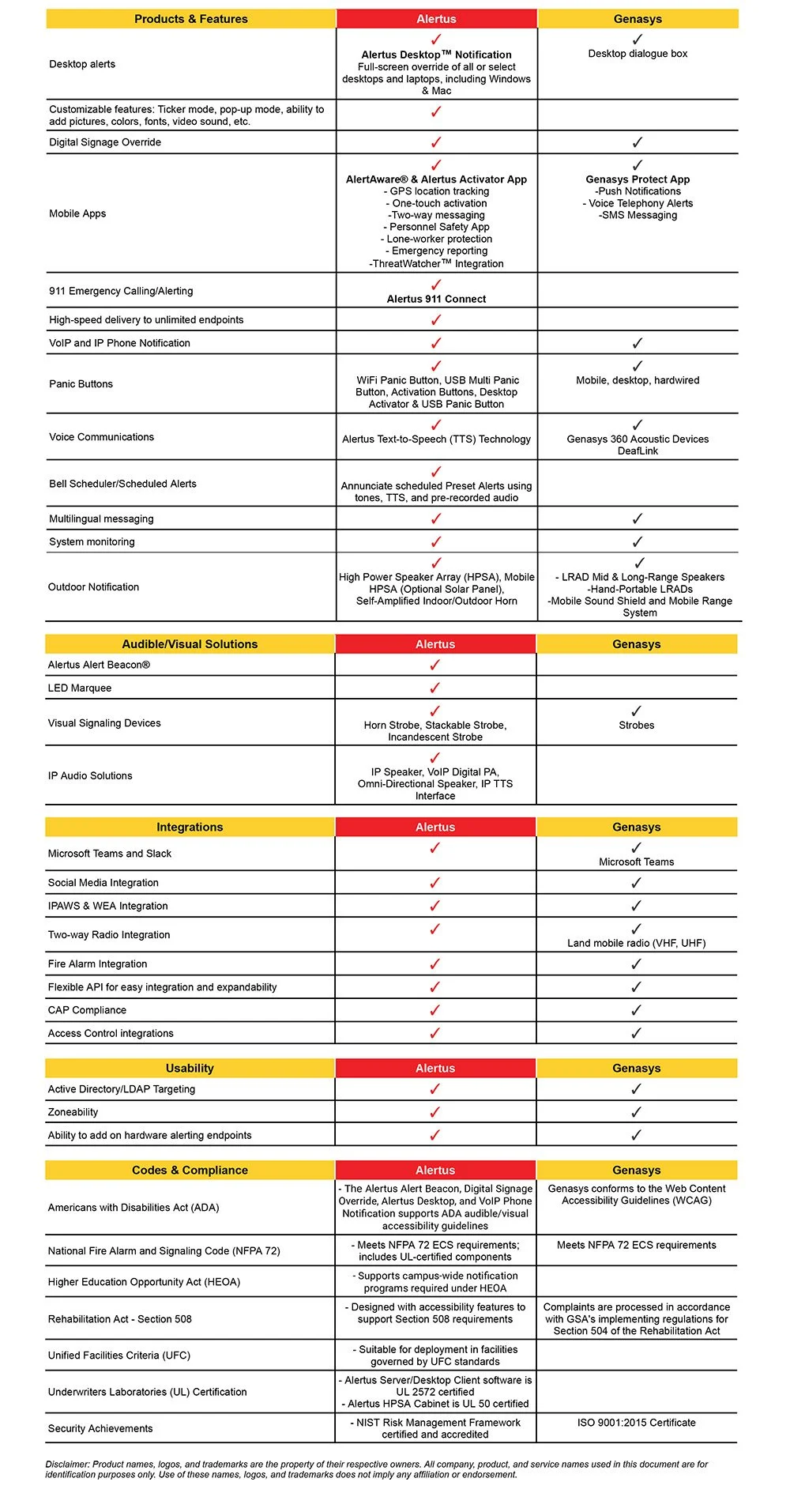 Alertus meets numerous critical standards, including those of the Americans with Disabilities Act (ADA) for audible/visual accessibility, HEOA requirements for campus-wide notification programs, and NFPA 72 ECS requirements.
